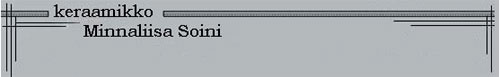 Lisätietoja:![]() ![]() Valmistetaan ja myydään keramiikkatuotteita. Järjestän sopimuksen mukaan erilaisia keramiikan lyhytkursseja pienille ryhmille. Kuvia tuotteista: ![]() ![]() Rakukeramiikka ![]() RAKU on 1500-luvulla Japanissa kehitetty keramiikan polttomenetelmä. Lasitetut esineet kuumennetaan raku-uunissa 1000 asteeseen, jonka jälkeen esineet nostetaan pihdeillä metalliastioihin joissa on esim. lehtiä ja sahanpurua, savustuksen jälkeen esineet upotetaan veteen. Raku-esineet ovat mustia tai tummahkoja niistä kohdista missä ei ole lasitusta. Katso lisää kotisivuilta: www.minnaliisasoini.com |